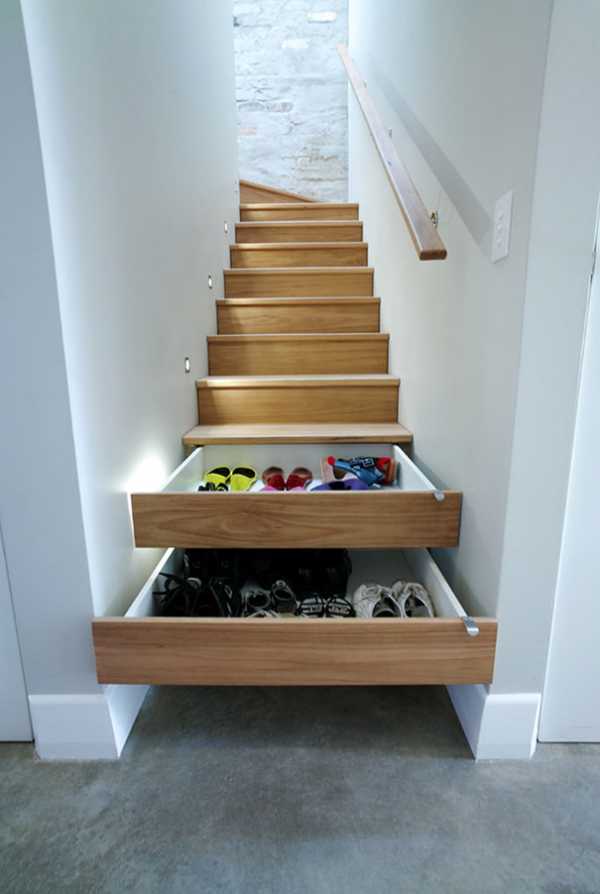 1. Установите ящики под лестницей