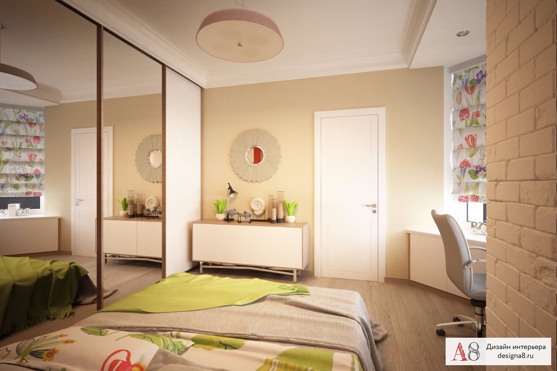 Детям следует отвести ту часть комнаты, которая находится дальше от входа, ведь они ложатся спать раньше взрослых и, как правило, встают позже. Такое расположение зон позволит вам по вечерам заниматься своими делами, входить в комнату и выходить из нее, не тревожа сон детей.