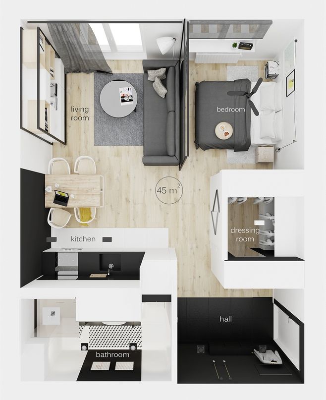 Если у вас небольшая квартира, то нет смысла абсолютно все обосабливать. Если хочется простора – нужно объединять зоны. Зонирование уместно, но нужно понимать – где, с какой целью и зачем вы это делаете.