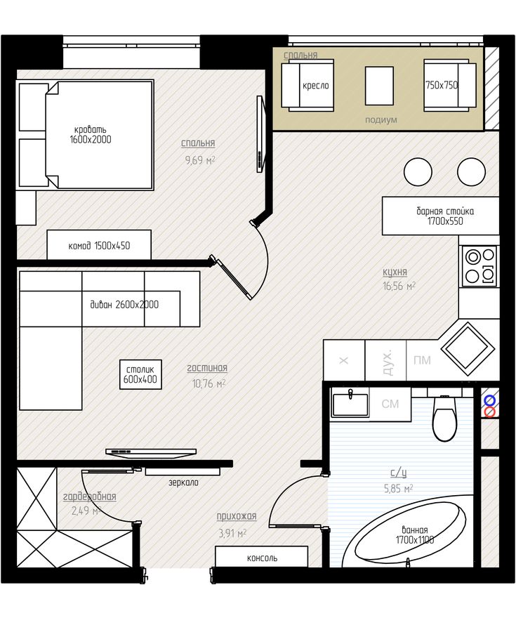 План квартиры-студии