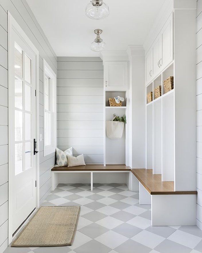 Это также отличный практичный вариант, поскольку вы можете хранить весь внешний мусор в пределах первого входа, где износостойкий плиточный пол будет легко поддерживать в чистоте, а первый взгляд через входную дверь будет выглядеть поразительно. .
