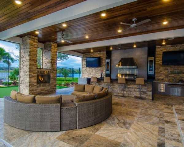Для создания уюта и приятного времени препровождения очень важно красиво оформить дизайн двора в частном доме. При оформлении двора определитесь сначала с местом для отдыха, а затем уже обустраивайте красиво и гармонично близлижайшую территорию. Для этого хорошо подойдут природные материалы и стихии: огонь, вода, камни, зелень, цветы и деревья. На фото ниже смотрите примеры оформления дизайна двора частного дома в современном стиле.