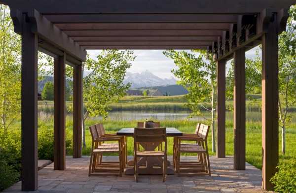 Если вы планируете установить у себя во дворе беседку, то лучше всего отдать предпочтение конструкции из натурального дерева или брусьев. Древесину можно оставить необработанной – это вполне впишется в общую концепцию. А можно, наоборот, украсить балки и стены беседки декоративной резьбой или росписью.