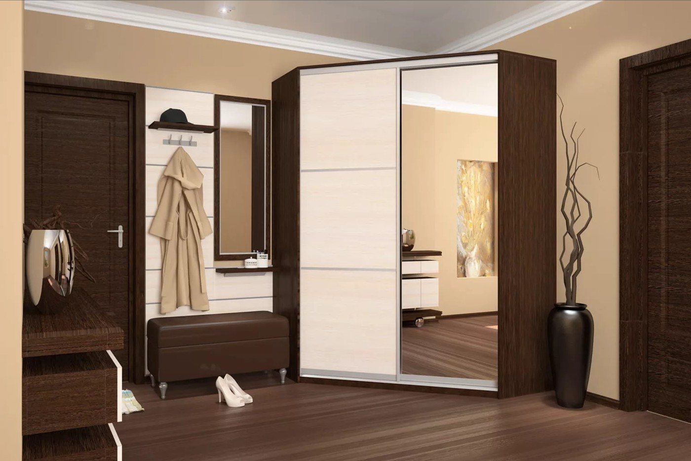 - Угловые шкафы в прихожей варьируются в зависимости от формы, размера и расположения.
