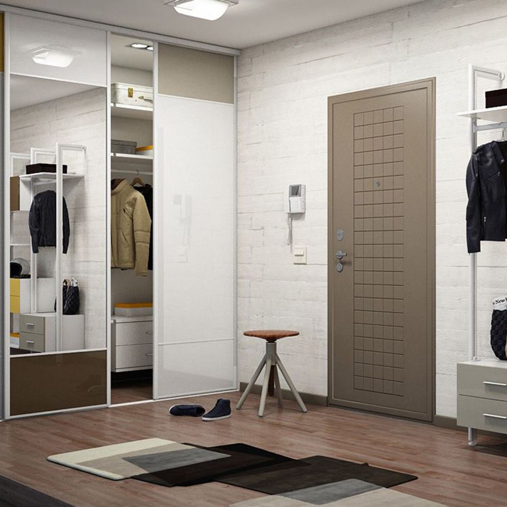 - Для квадратного коридора, более уместна установка конструкции во всю стену.