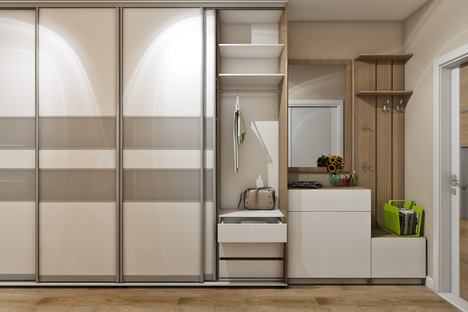 Если площадь прихожей довольно велика, то самый правильный вариант – поставить туда шкаф-купе. Дело в том, что благодаря его вместительности, вы с легкостью сможете поместить туда всю верхнюю одежду своей семьи.