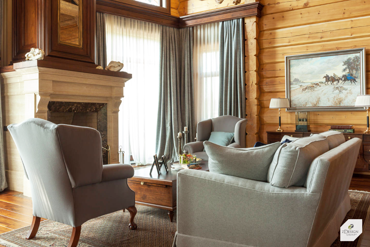 Шторы в интерьере комнат загородного дома