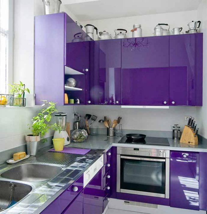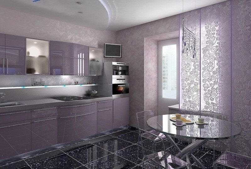 Особенности дизайна кухонного гарнитура сиреневого цвета