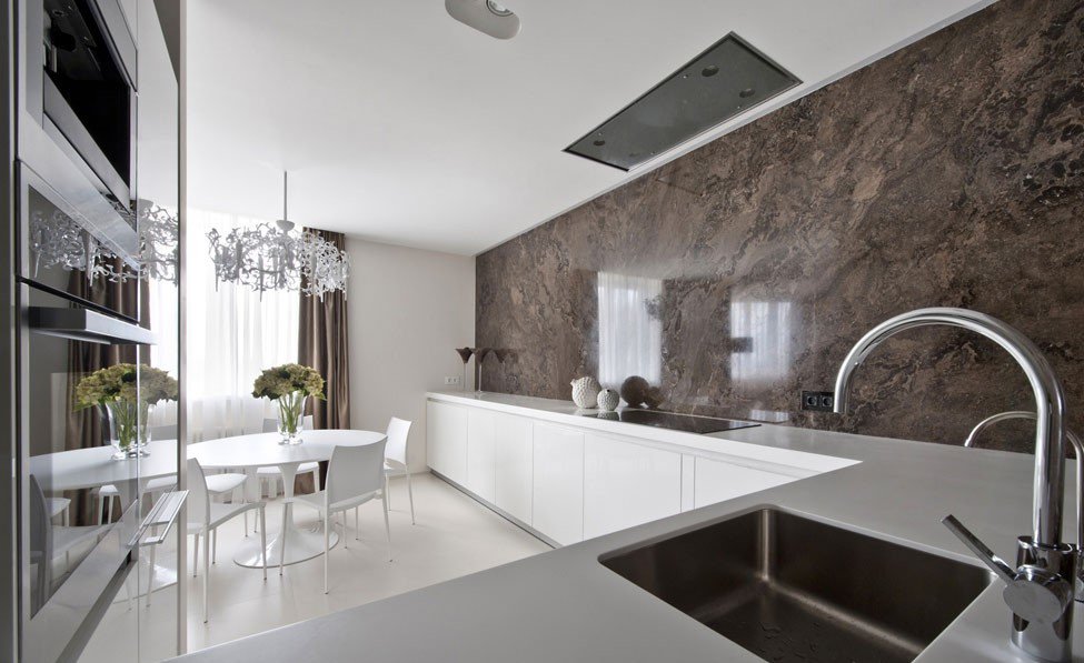 Поменять материал фартука и столешницы. Новые и вновь открытые материалы, такие как бетон, мыльный камень, терраццо, нержавеющая сталь, переработанное стекло и дерево, предлагают новые альтернативы граниту, мрамору или ламинату.