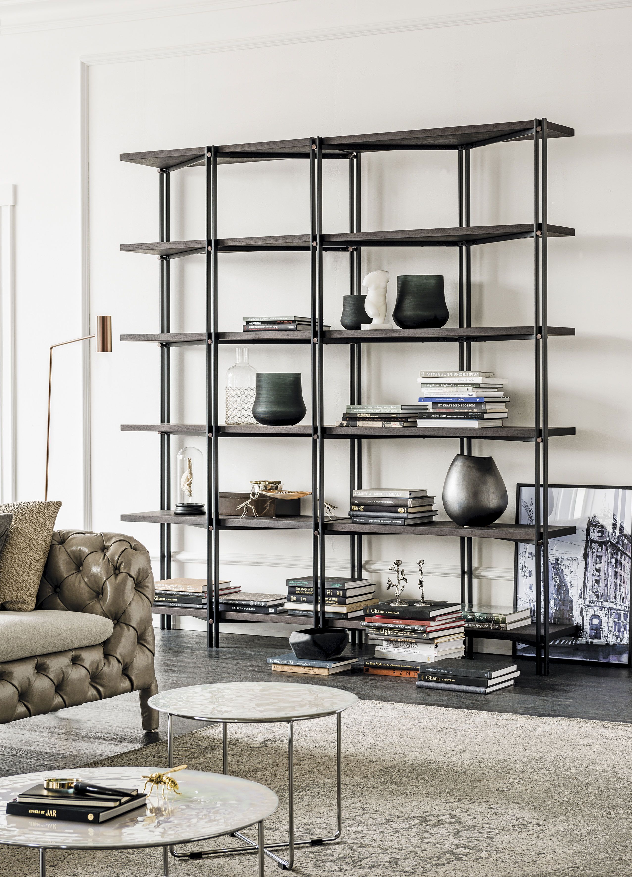 - Стеллажи гармонично вписываются в интерьер любой стилистики благодаря сочетанию простоты внешнего вида с широкими возможностями для подбора форм, размеров полок.
