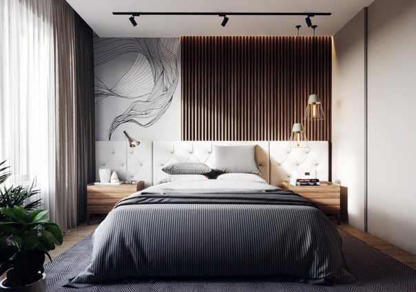 Стиль этой современной спальни — уникальный, модный, вечный и неподвластный времени.Как это прекрасно!