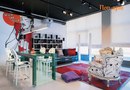 Стиль и теория проектирования, основанные на применении новаторских технологий. Характерной особенностью является: выступающие элементы, конструкции и инженерное оборудование. Хромированные поверхности, металлические трубы, отполированные элементы — все, что может представить человек думая о космических кораблях. Нет атрибутов не востребованных в интерьере «высоких технологий». Периодически мода на «Хай-тек» возникает вновь, с появлением новых конструктивных и отделочных материалов, либо от спроса потребителя.Пост-модернизм