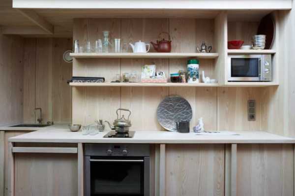 Чем меньше отдельно стоящих элементов на кухне, тем она компактнее и функциональнее.