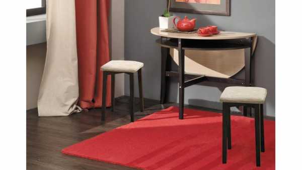 - Избегайте отдельно стоящих изделий. Это позволит сохранить простор. Откажитесь от классической модели стола. Замените ее специальной столешницей. Она крепится к стене и откидывается в нужный момент. Когда стол не используется, столешницу убирают, освобождая место.