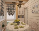 Если у вас деревянная беседка или веранда, этот стиль подойдет лучше всего. Все вокруг должно быть деревянным, даже пол. Стол — массивным. Вместо стульев — лавки. Гарнитур должен выглядеть грубо сработанным, а плитка должна быть замаскирована под печку (либо можно сделать настоящую печь). На пол — плетеный коврик, на столбы — связки лука, чеснока, травы. В угол — сундук с каким-нибудь полезным кухонным скарбом.