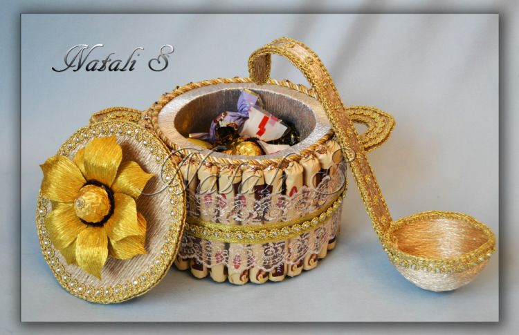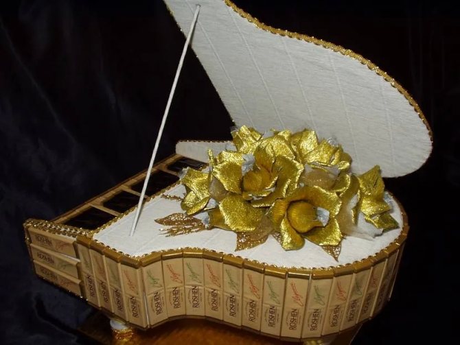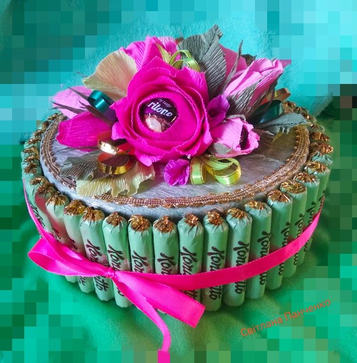Еще один интересный мастер-класс, как сделать оригинальный подарок из конфет своими руками, подготовил Иванов Петр Сергеевич: «Моя жена любит делать сладкие подарки, и в этот раз она подготовила классный.