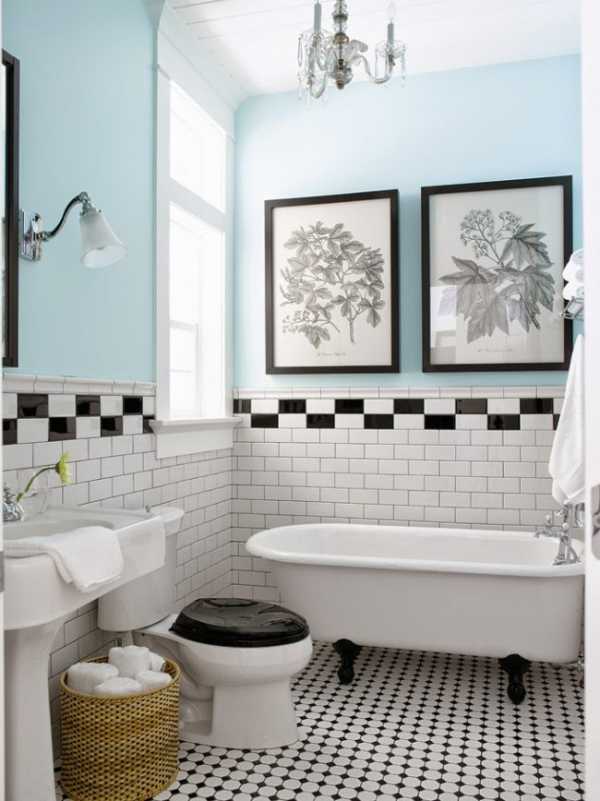 Контрастная отделка ванной комнаты в ретростиле