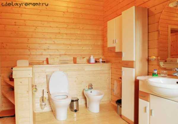 На фото выше пример отделки совмещенного санузла в коттедже.