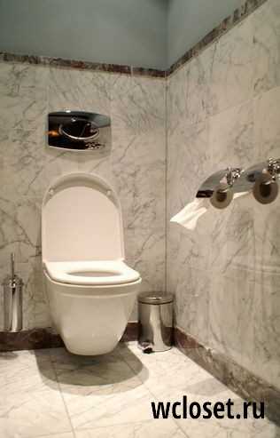 Так как туалет — помещение, требующее частой уборки с применением моющих средств, требования к отделочным материалам высокие. Они должны хорошо мыться, не бояться воды, не впитывать запахи, иметь длительный срок эксплуатации и длительное время не менять цвет. Таких материалов не так и много. Чаще всего это керамическая, мраморная плитка или керамогранит.