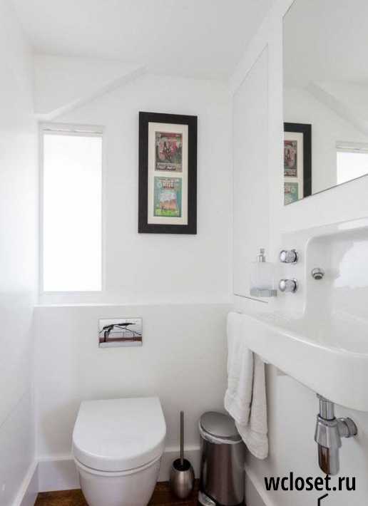 Светлые тона визуально расширяют пространство, но не стоит впадать в крайности – на фото выше пример неудачного минимализма в оформлении туалета.