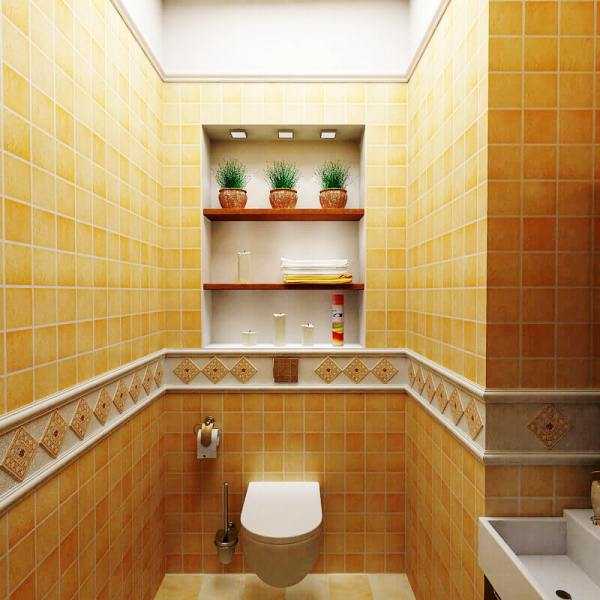 Вообще, вышесказанное не должно означать, что вам и вовсе следует отказаться от радующих душу и глаз эффетных оттенков. Если размеры туалета позволяют использовать, к примеру, сочный желтый цвет, то и используйте сочный желтый цвет, кто вам мешает? На фото отличный пример рациональной интеграции столь редкого цветового решения для туалетов.