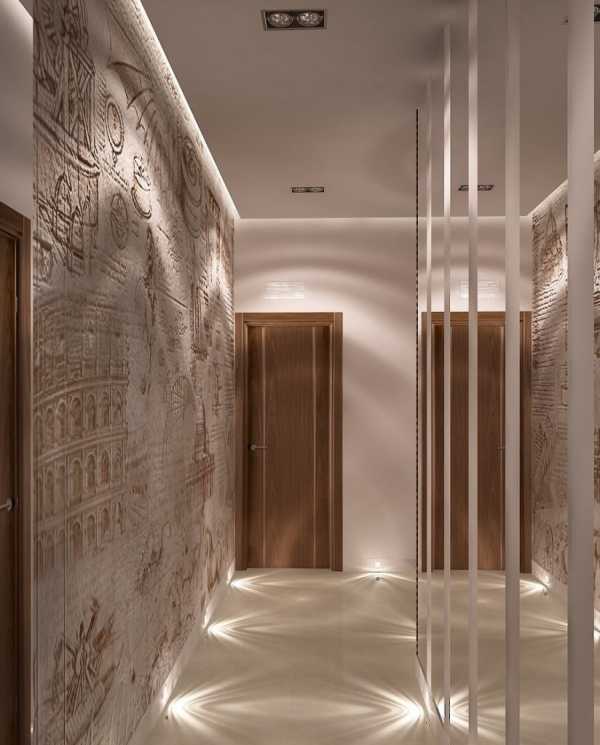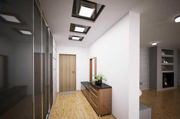 Освещение длинного, узкого коридора также способно изменить форму передней: