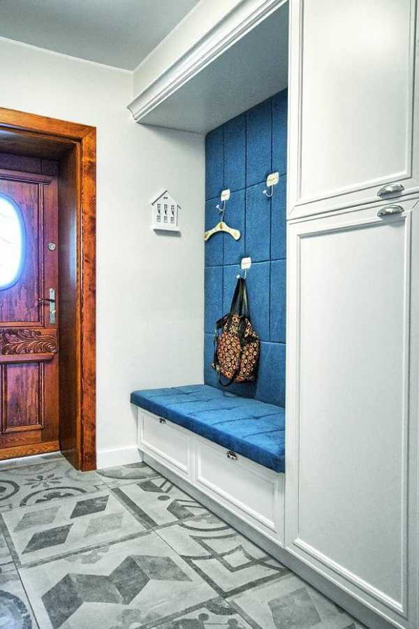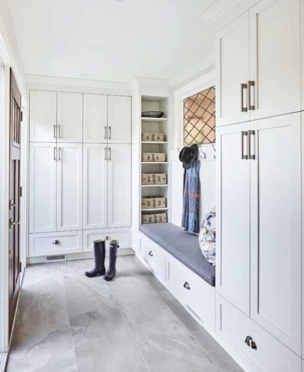 Встроенная скамья – отличное решение, чтобы не захламлять узкую прихожую лишней мебелью