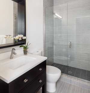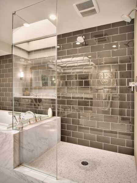 Различные оттенки серого цвета весьма популярны в современных дизайн-проектах ванных комнат. Этот нейтральный цвет становится идеальным фоном для белоснежной сантехники и блестящих аксессуаров к ней. Использование комбинаций различных оттенков и плитки разных размеров позволяет создавать интересные интерьеры, в которых будет комфортно и спокойно каждому.