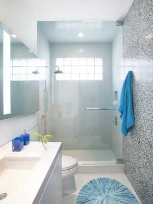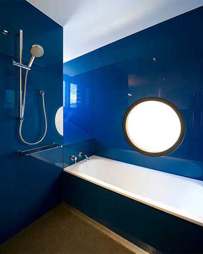 - оформление в морском стиле. Используйте цвета, напоминающие море – синий, голубой, песочный. Наличие воды и морская расцветка отнесут мысленно к лазурным берегам, помогут расслабиться. Интенсивность цвета выбирайте по своему усмотрению: оформите ванную в спокойных, нежных оттенках, или используйте более яркие цвета. Но прежде чем решиться на такой проект, подумайте о том, что его цветовая гамма холодна, и у некоторых людей вызывает дискомфорт. Если вы не из их числа, то смело приступайте к осуществлению намеченного;