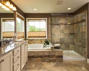 Плитка под камень полностью повторяет внешние качества натурального материала, она придает ванной комнате благородный и элегантный вид, интерьер выглядит богато. Можно все помещение отделать плиткой под мрамор или гранит, и оно будет хорошо смотреться за счет узора, свойственного натуральному камню.