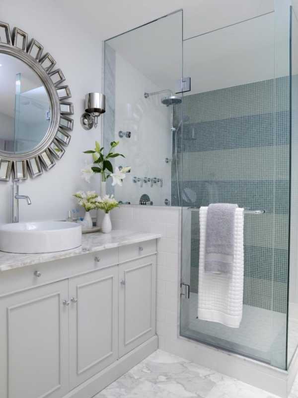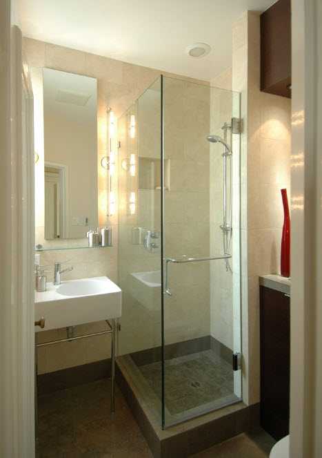 Свет. Пожалуй, самый важный фактор, который необходимо учитывать при оформлении маленьких помещений. Глянцевая плитка отражает свет; кроме того, за глянцевой поверхностью легче ухаживать. Стеклянная дверца душевой кабины и зеркало «обманывают» глаз и путают человека: с первого взгляда не понять, где начинается и где оканчивается помещение. Большой каталог плитки для ванной различных стилей и от множества производителей можно смотреть тут.