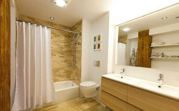 Если проект ванны подразумевает полностью отделку под дерево, то идеальным решением станет использование двух цветов. Это позволит создать интересный, гармоничный дизайн.