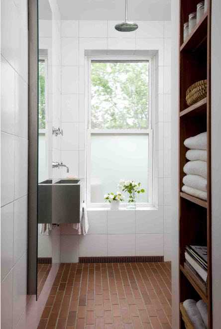Необычно смотрится плитка, уложенная в перевязку: при такой укладке создается эффект кирпичной стены. Выберите несколько близких тонов одного цвета, чтобы усилить эффект. Например, возьмите розовый кафель и подберите к нему плитку более светлого и более темного тонов. А если хочется усилить эффект кирпичной стены, отдайте предпочтение плитке оранжевого цвета размером 30?15.