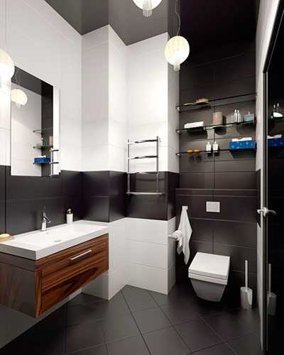 Контрастный интерьер актуален всегда. Дозированное использование темных оттенков на фоне светлой отделки позволяет создать динамичный, четко структурированный интерьер, который никому не покажется скучным. Даже в ванной комнате малых размеров можно применить игру контрастов, используя темный тон в качестве окантовки, узора на акцентной поверхности или орнамента напольного покрытия.