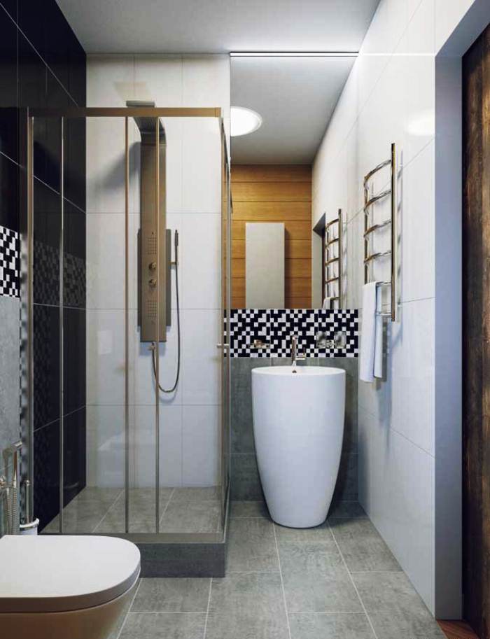 Для этого следует правильно расставить все сантехнические приборы и аксессуары, а также воспользоваться хитрыми приемами, к которым довольно часто прибегают дизайнеры.