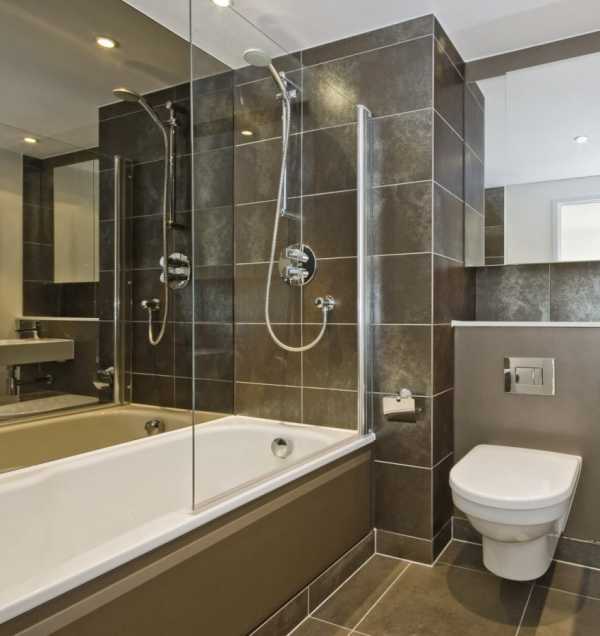 Холодный темно-коричневый оттенок в небольшой ванной