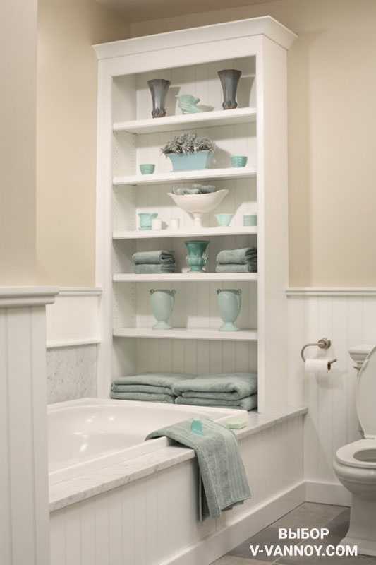 Продолжение ванны в виде вместительного стеллажа.