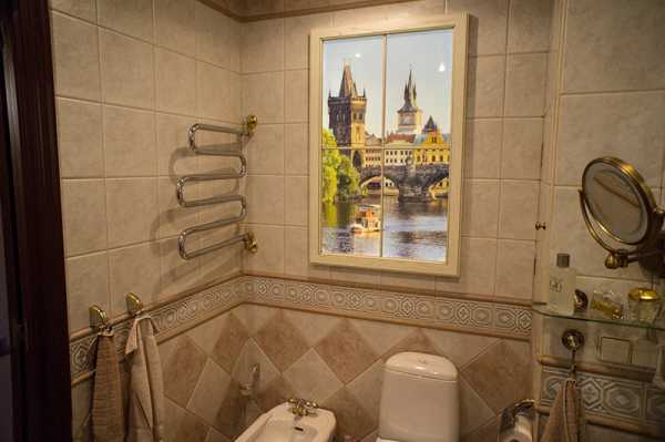 Если площадь ванной комнаты составляет всего 2-3 квадратных метра, то можно использовать зеркальное фальш-окно. Оно визуально сделает помещение более светлым, просторным и комфортным.
