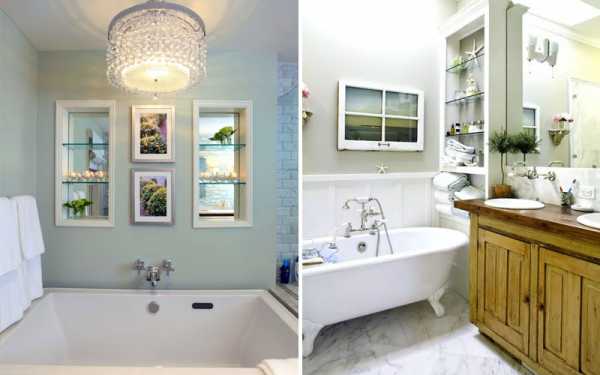 Окно можно превратить в необычную и практичную нишу. Для этого отверстие со стороны кухни или туалета закрывают листом гипсокартона. Со стороны ванной комнаты образовавшуюся нишу изнутри выравнивают посредством цемента и отделывают материалом, который используется для облицовки всей комнаты. В углублении рекомендуется установить подсветку. Оригинальный способ выделить нишу – использовать для облицовки задней части стены зеркальный материал.