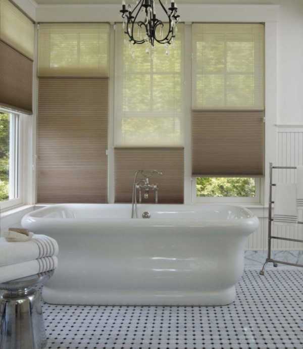 Большое окно в ванной комнате сделает ее более светлой