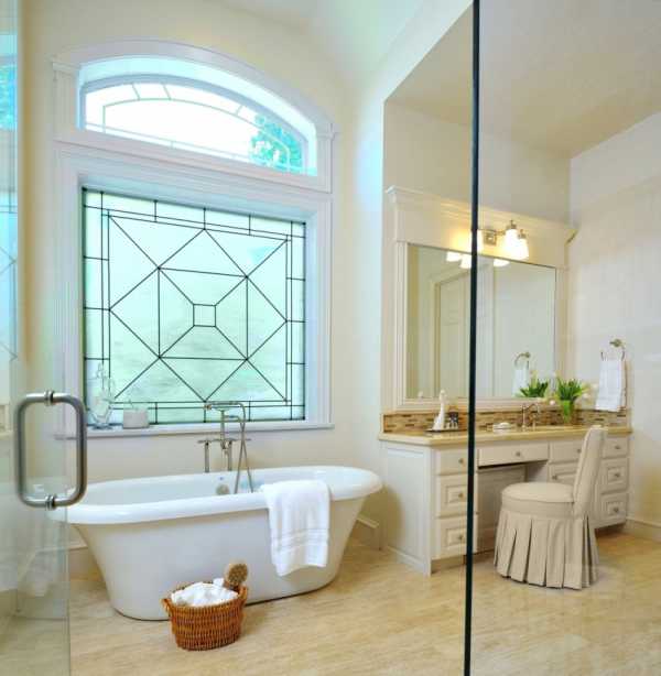 Использование стандартных прозрачных стекол можно назвать универсальным вариантом. Они пропускают максимум солнечного света и позволяют беспрепятственно любоваться уличным пейзажем. Декор стекла позволит сделать интерьер ванной оригинальным. Прозрачное стекло можно заменить на следующие аналоги.