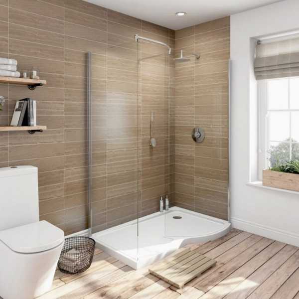 Дизайн ванной комнаты с душем и имитацией дерева