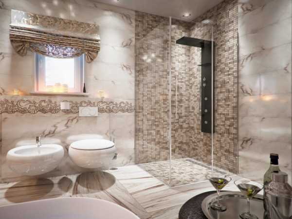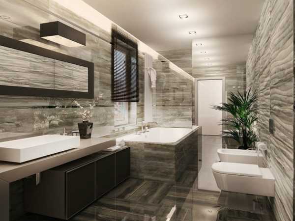 Шикарный дизайн ванной с отделкой стен керамогранитной плиткой