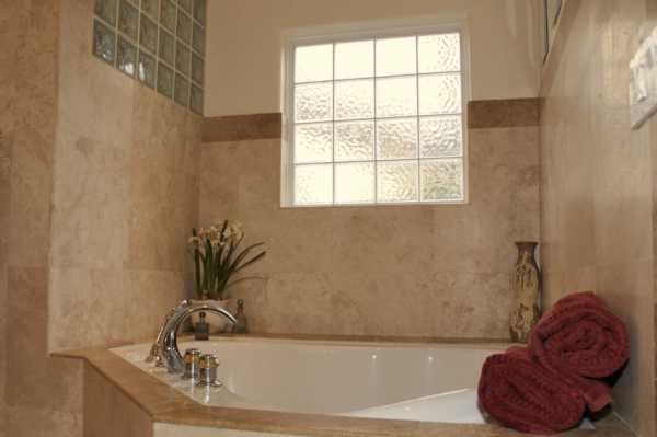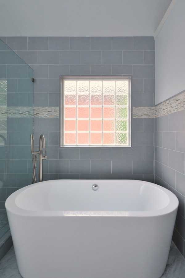 Если все же наличие открывающегося окна в ванной по дизайну не предусмотрено, то можно оставить хотя бы вторую функцию — дополнительное освещение, установив в проем стеклоблоки — они монтируются наподобие кирпичной кладки, но пропускают достаточно света.