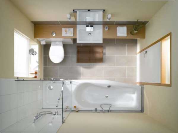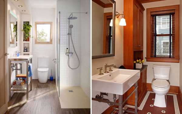 - Окно напротив двери, сантехника вдоль стен. Идеальный вариант, чтобы впустить максимум света и при этом получить свободный доступ к окну для проветривания.