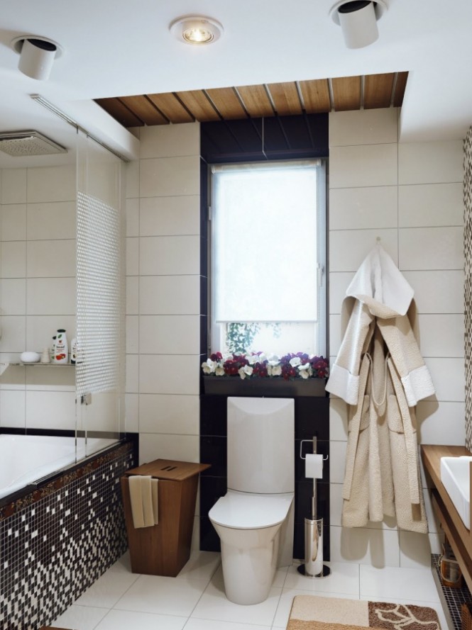Если позволяет стена дома, то лучшим вариантом станет ванная с окном в частном доме. Можно окошко прорубить и в потолке.