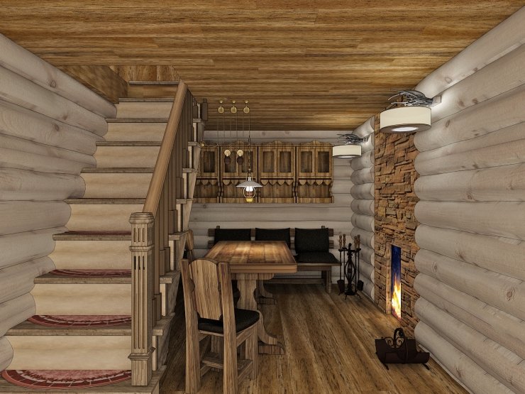 Традиционный вариант, который по своему внешнему виду напоминает дизайн уютной избушки.