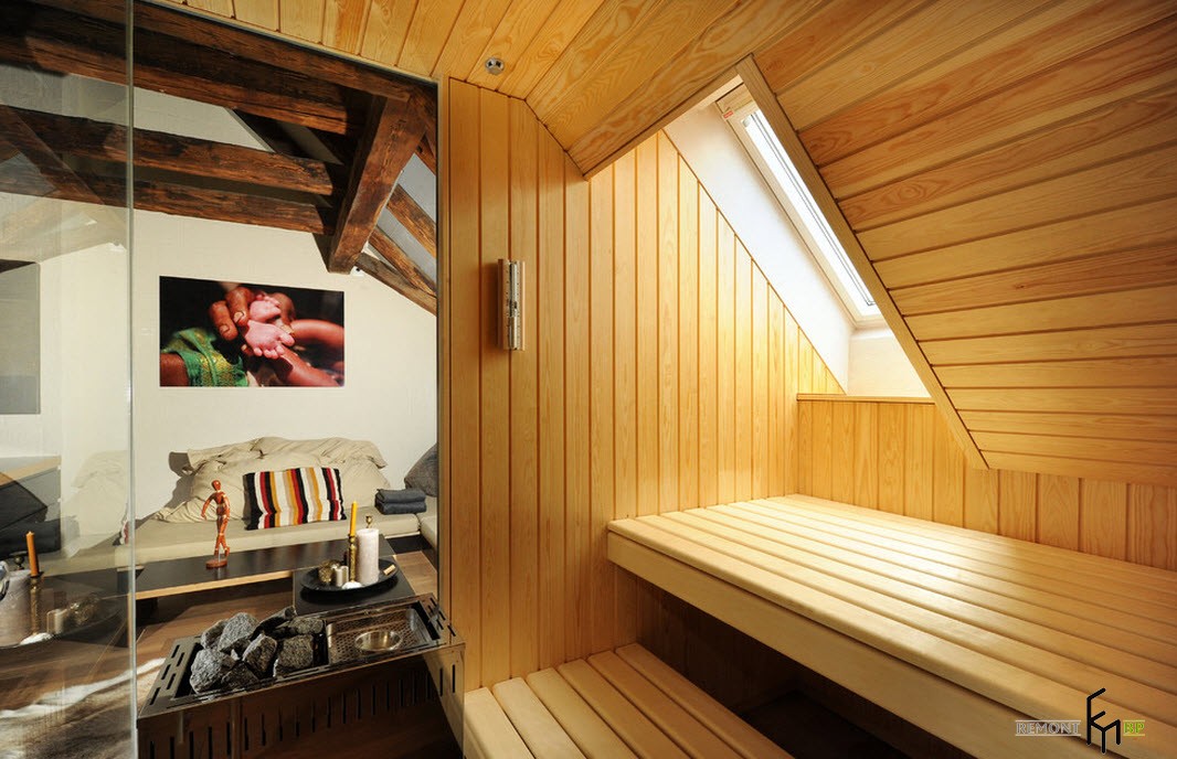 Неспроста в самых первых мансардах мира обитали люди богемного образа жизни: художники, музыканты, поэты. Ведь в этом тихом и светлом помещении приятно отдыхать и общаться, особенно после жарких банных процедур. А вот сам дизайн этой комнаты может быть самым разным и необычным – не обязательно только в виде стола да скамеек.