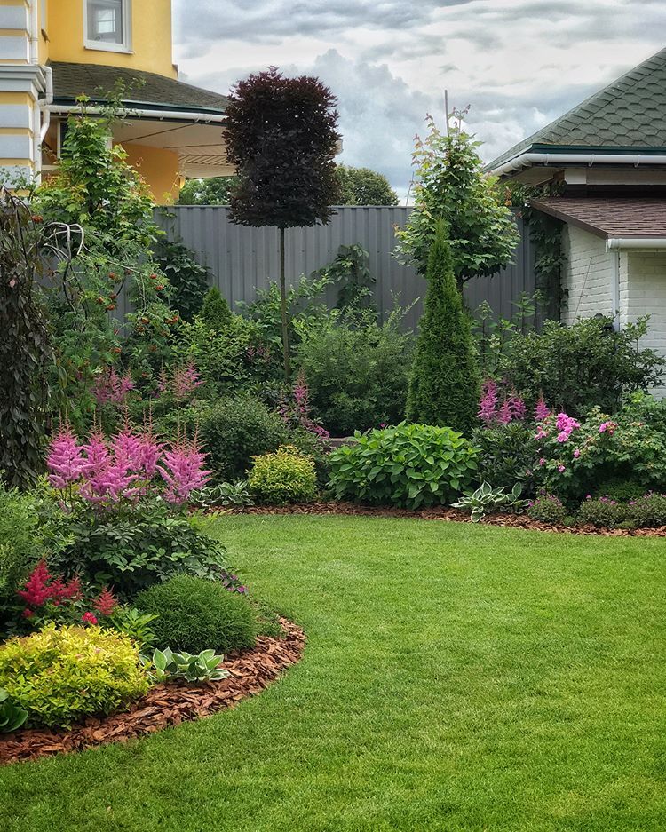 Удачная планировка сада на фото показывает сочетание элементов ландшафтного дизайна.