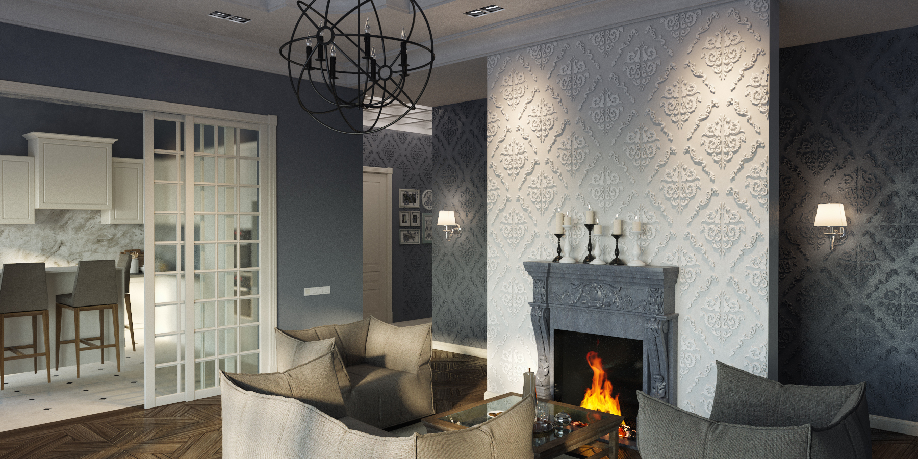 Такая отделка отлично впишется в гостиные в классическом стиле. Фактурная или структурная штукатурка гаромонично смотрится в интерьерах в современном минималистичном стиле.
